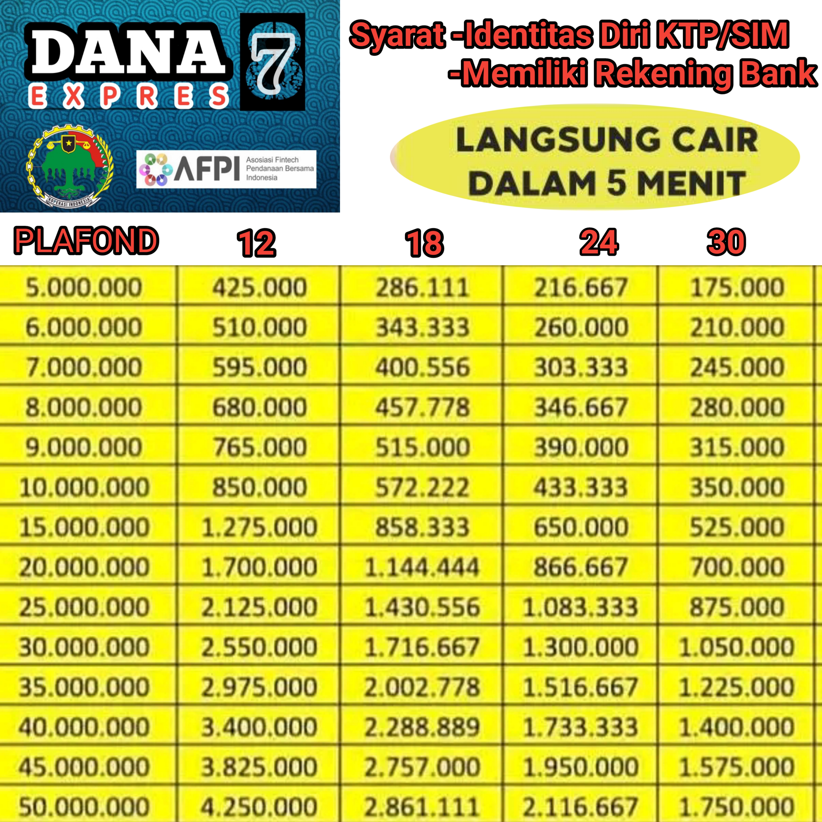 Cek Tabel Pinjaman Dan Tenor dibawah